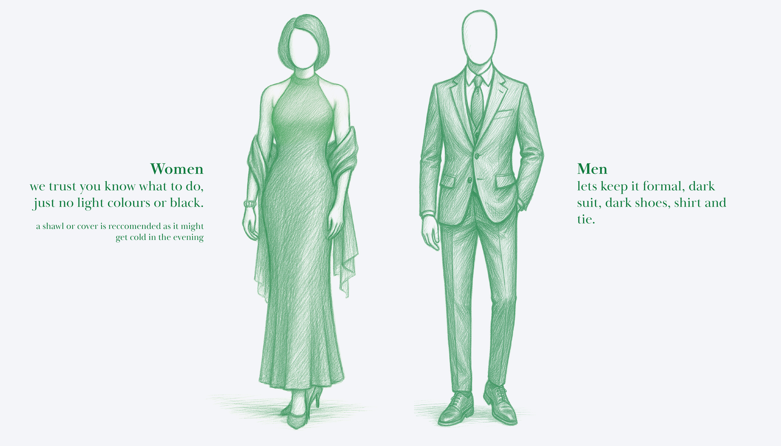 We kindly ask you to follow the dress code, to honour tradition and add a sense of occasion,